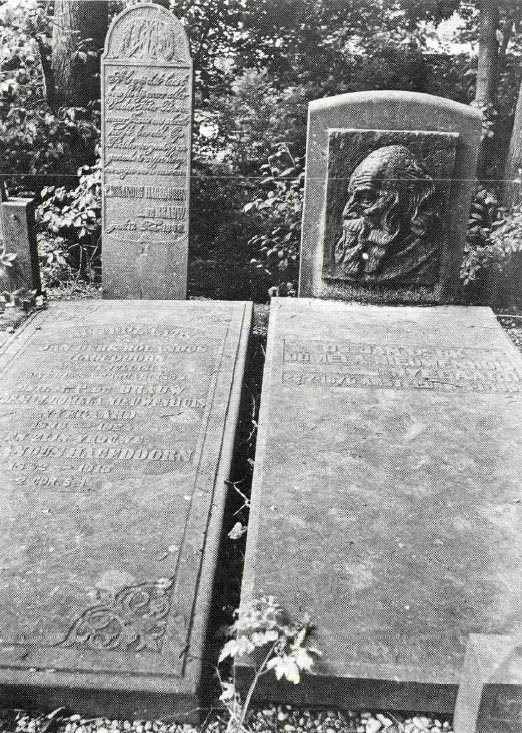 RUSTPLAATS VAN JAN DERK ROLANDUS HAGEDOORN (20) GEB: 21 JULI 1814 OVERL: 8 FEBRUARI 1858 GEH: M: P. DE BRAUW PROF. MI J. DOMELA NIEUWENHUIS NYEGAARD (51) 1836-1924 EN ZIJN VROUWE E. ROLANDUS HAGEDOORN (49) 1842-1916 2 COR. 5:1