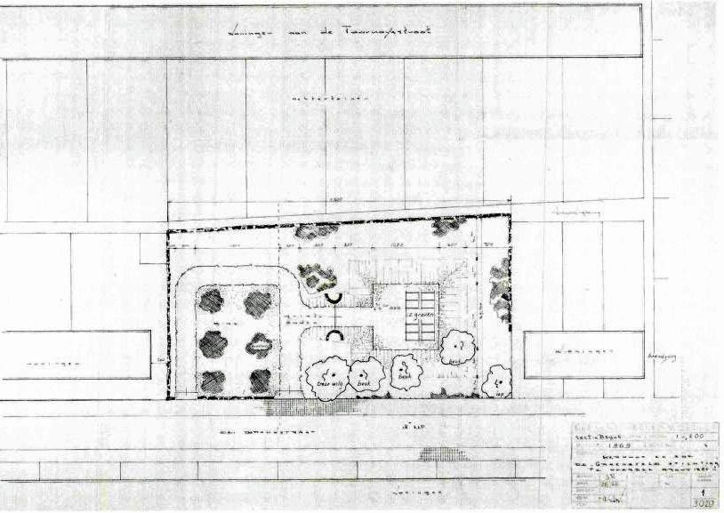 We zien hier midden in de bebouwde kom tussen de woningen van de De Brauwstraat en die van de erachter gelegen Tournoysstraat een begraafplaats waarvan de totale oppervlakte slechts ca. 1480 m2 bedraagt 1).