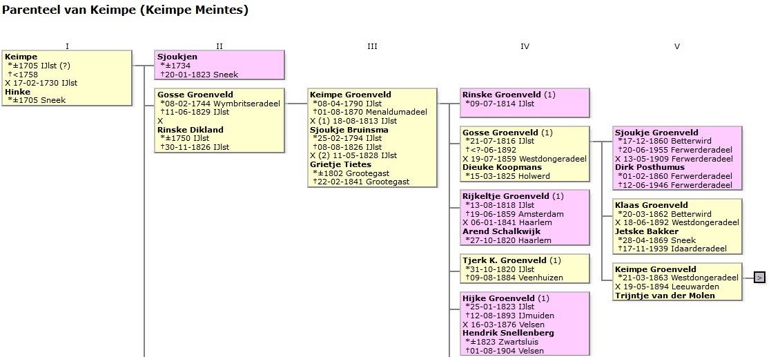 Hiernaast een voorbeeld van hoe zo’n parenteel eruit ziet.